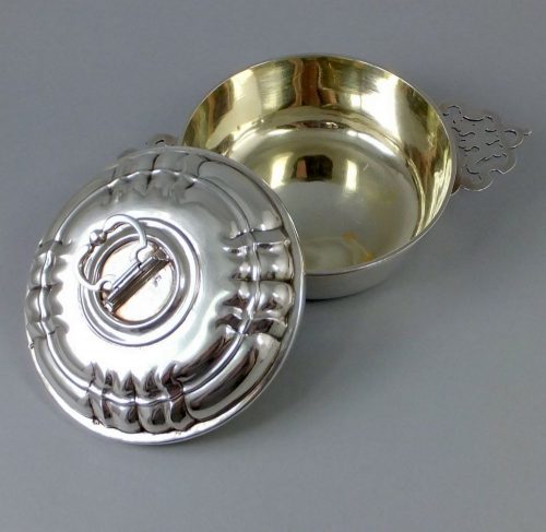 Augsburg 1759 silver ecuelle with lid. Inside with origianal fire gilding. Maker Friderick Schwestermuller.