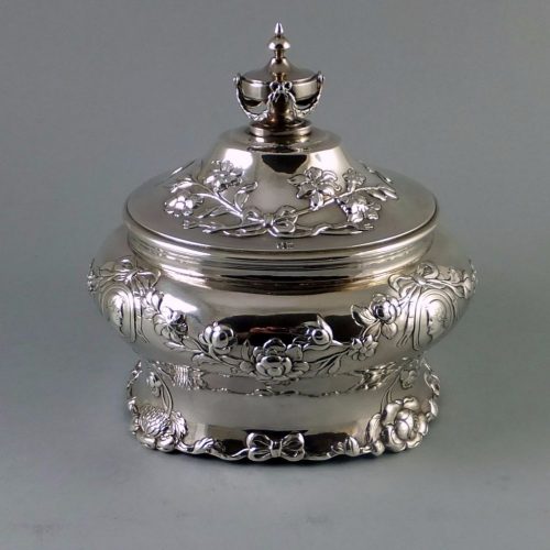 Antique Dutch silver table tobacco box , marked underneath and lid, with the town mark of Amsterdam , makers mark and date letter