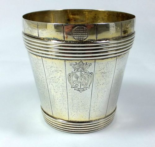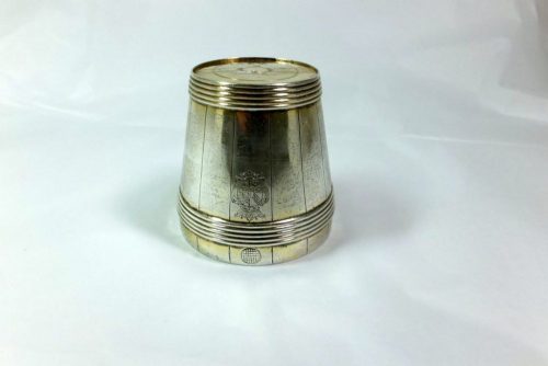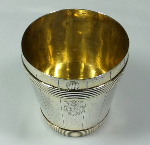 Antique silver beaker marked underneath with the town mark of Nurnberg and a makers mark. The makers name is not known but we know that he worked between 1643-59.