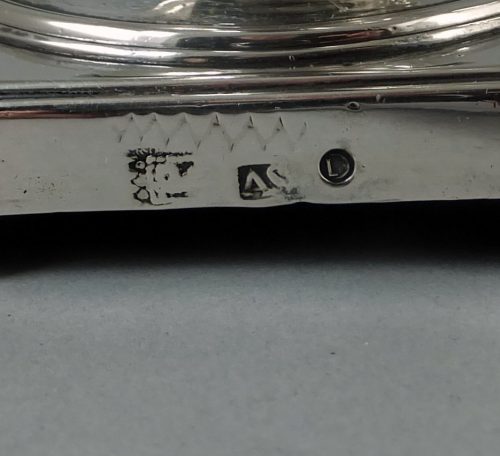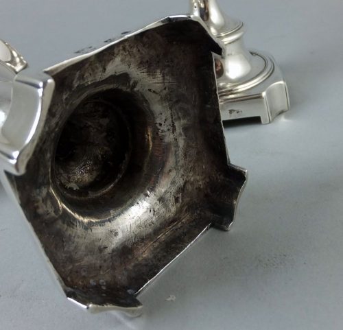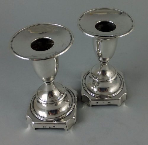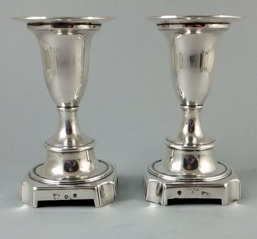 Pair of cast silver “dwarf” candlesticks from Poro, Potugal. Merked on base with the town mark of Porto for the period 1804-1810 and the makers mark of AS standing for Antonio Jose de Sousa 1783-1810