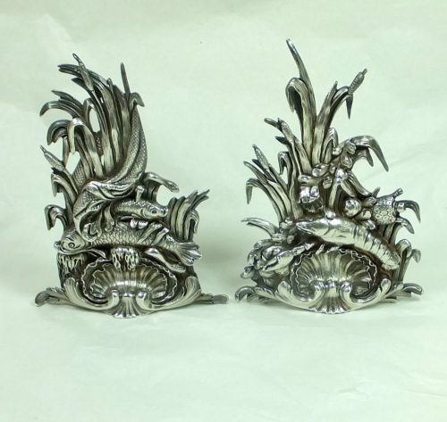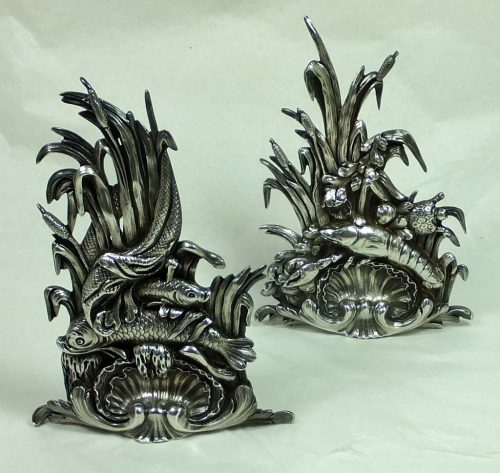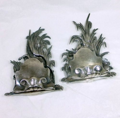 Pair of “fantastic” silvr menu holders. Unmarked , probably French or Italian ca 1800.