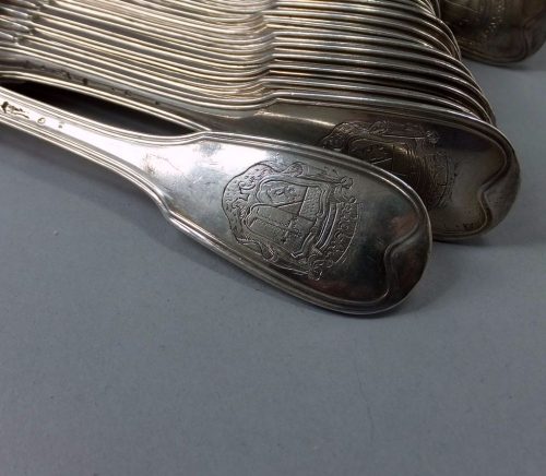 This very rare set of 18 fork and spoons weigh : 3454.2 grams