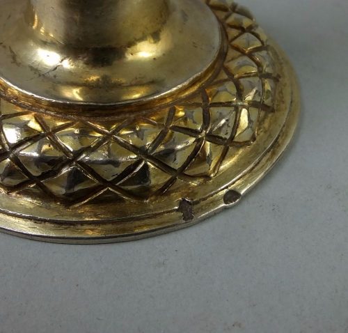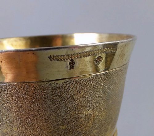 Fire gilt silver cup with “diamond” decoration. Marked with the town mark of Augsburg for 1640 and the makers mark of Jeronimus Gilg / 1619-70 /