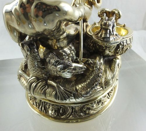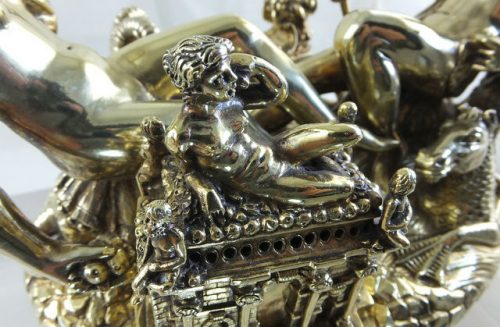 Silver gilt copy of the Cellini Salt. Probably German ca 1870. The base is 15 cm x 12 cm Height:15.5 cm Weight:1325 gr