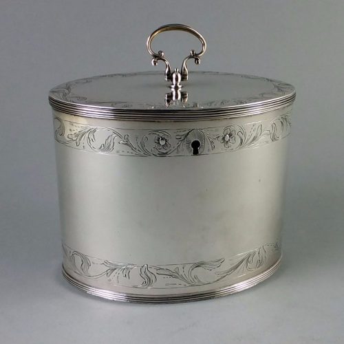 antique engraved silver tacaddy, hallmarked underneath with the town mark of The Hague for 1809.