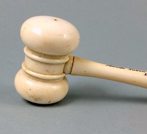 Antique ivory gavel with an inscription : ” Maude Tuson-Thomas OBE. 1934.”