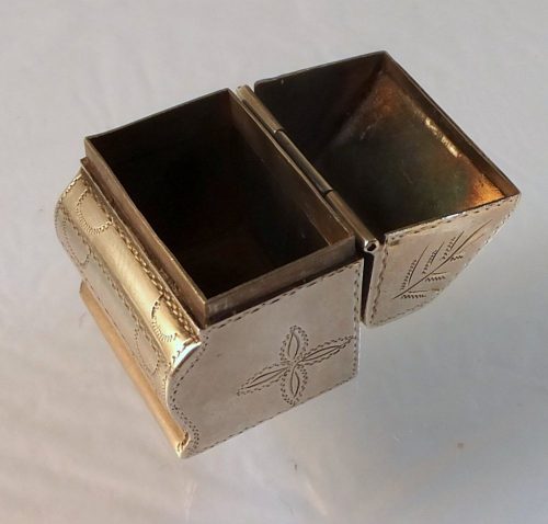 Antique silver box in the shape of a writing bureau. Probably Dutch ca 1840