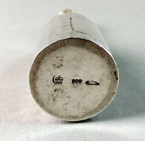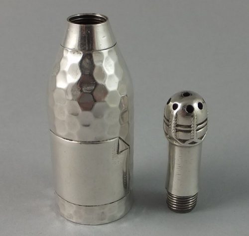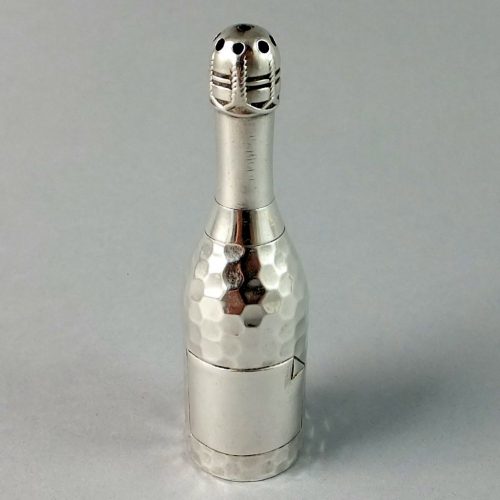 German ca 1890-1900 silver salt shaker in the form of a champagne bottle. Marked on the underside.